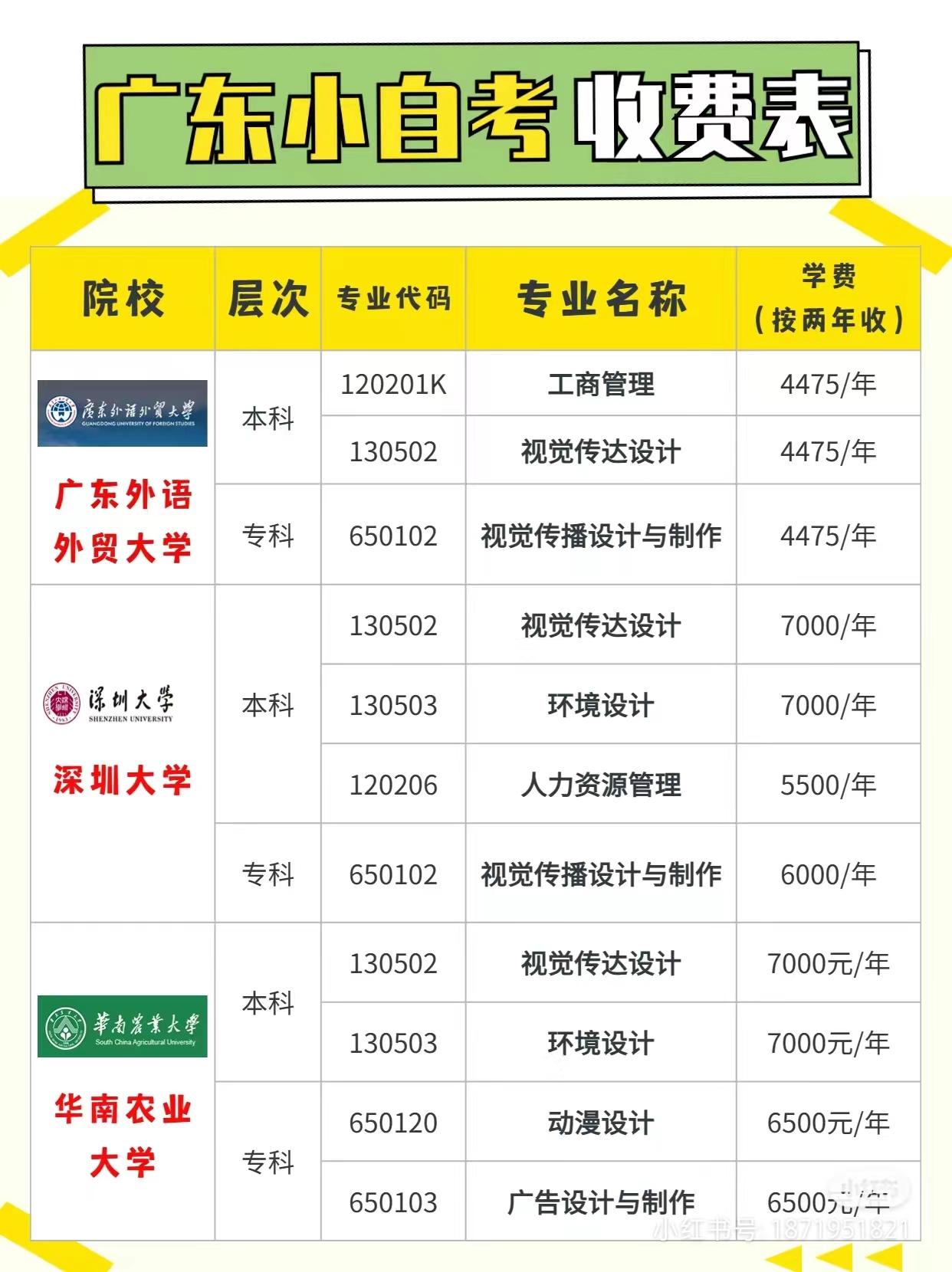 目前广东地区开设小自考学校正在减少,能选择的小自考专业多以设计为主。具体如下:
