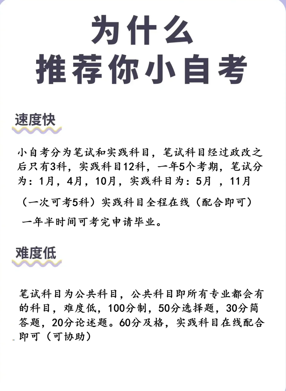 ②小自考一年可以考四次,包括两次统考和两次校考。毕业会更快。