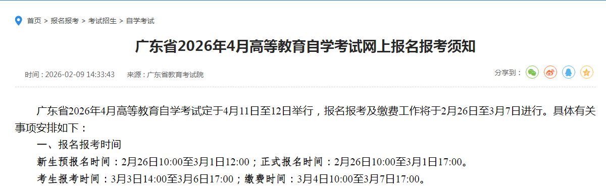 - 【新通知】26年4月广东自学考试于4月11-12日举行 2026-02-24