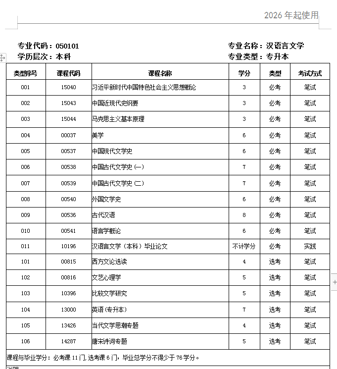 - 广东汉语言文学自考本科科目(2026最新) 2026-03-05